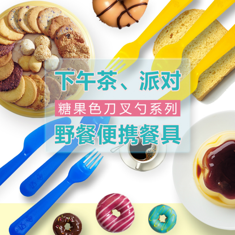 食品级塑料,安全卫生,手柄磨砂质感,餐具上部抛光,为半透明果冻色,颜色鲜艳,适用于西式派对,下午茶品尝点心、外出野餐,同样适合家庭,尤其是儿童使用的塑料餐具。